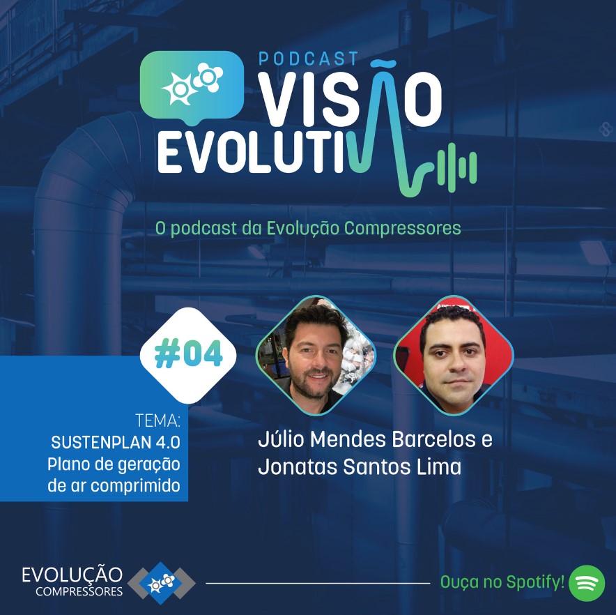 Evolução está no ar! Ouça o quarto episódio do podcast Visão Evolutiva e conheça mais sobre o Sustenplan 4.0, o plano total de geração de ar comprimido, onde a gestão e manutenção fica por nossa conta para que você tenha ar comprimido como se tem luz e água! Clique aqui para ouvir!